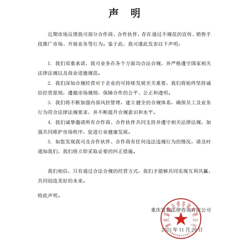 【公告】關于規范宣傳、銷售手段、開展業務等行為的聲明