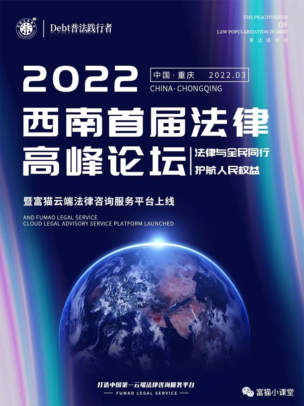 2022年3月1日,由重慶富貓法律咨詢服務(wù)有限公司主辦的“法律與全民同行,護航人民權(quán)益”——西南首屆法律高峰論壇于中國重慶拉開序幕。眾多政法界領(lǐng)導(dǎo)、法學(xué)專家教授、法律工作者齊聚一堂。共同見證西南首屆法律高峰論壇活動的舉行。